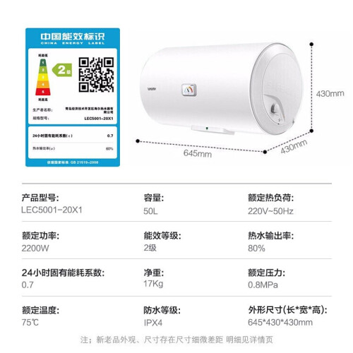 当前的位置: 首页 > 今日值得买 > 海尔(Haier)出品统帅热水器电热水器家用电恒温小型小户型浴室厨房节能速热储水式淋浴卫生间洗澡LC 【X1】50升 2200w+升级加热体【1-2人】