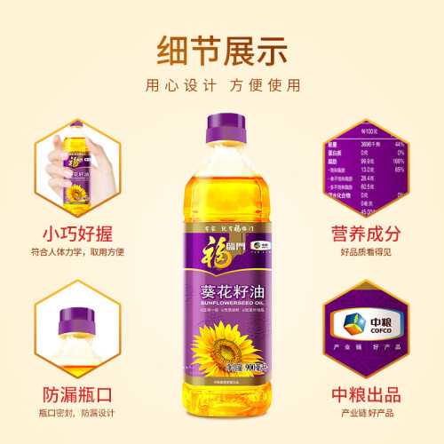 当前的位置: 首页 > 今日值得买 > 福临门 食用油 压榨一级葵花籽油900ml 中粮出品