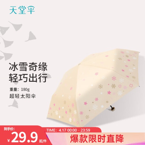 当前的位置: 首页 > 今日值得买 > 天堂伞 超轻晴雨伞三折两用女口袋伞黑胶防晒防紫外线太阳伞遮阳伞学生 冰雪奇缘 防晒黑胶UPF50+米