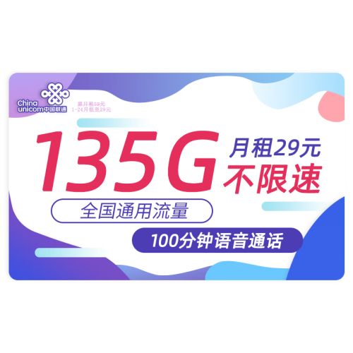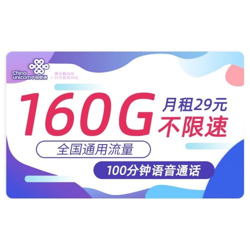 当前的位置: 首页 > 今日值得买 > 中国联通 流量卡无线流量5G手机卡号不限量全国通用上网卡随身wifi大王卡 百川卡-29元135G通用流量+100分钟通话