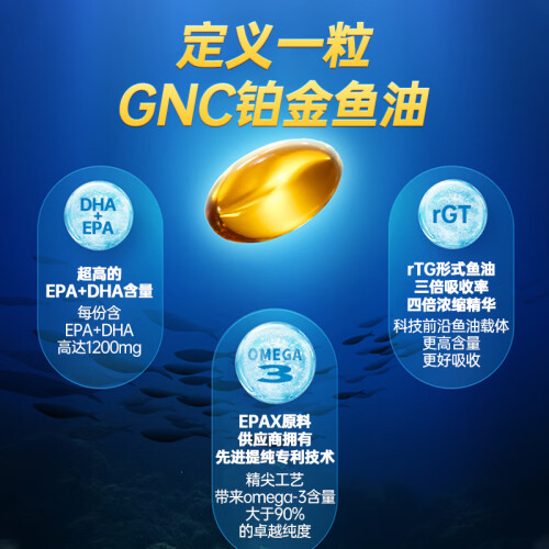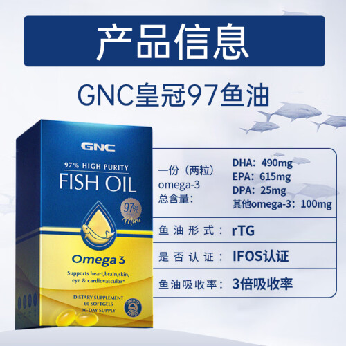 当前的位置: 首页 > 今日值得买 > GNC皇冠97深海鱼油软胶囊降血脂 epa中老年成人高纯度浓缩无腥味dha非鱼肝油omega-3进口 【添加DPA】皇冠97%鱼油 60粒