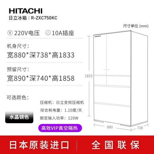 当前的位置: 首页 > 今日值得买 > 日立(HITACHI)日本原装进口冰箱735L多门电冰箱真空冰温保鲜自动制冰电动抽屉WIFI远程控制 【水晶镜色】R-ZXC750KC(X)