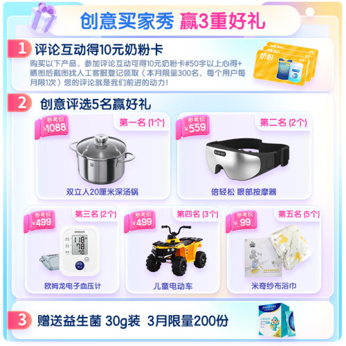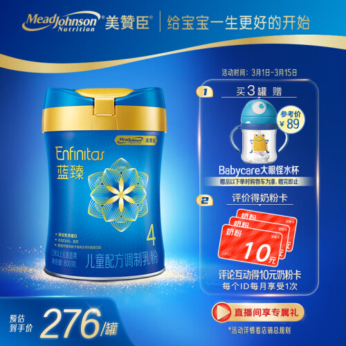 当前的位置: 首页 > 今日值得买 > 美赞臣蓝臻儿童配方调制乳粉 4段(3岁以上) 800克罐装 提升保护力