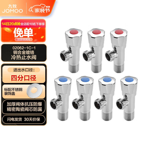 当前的位置: 首页 > 今日值得买 > 九牧(JOMOO)冷热三角阀止水阀角阀套装 卫浴五金通用 4冷3热 02062