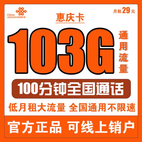当前的位置: 首页 > 今日值得买 > 中国联通 手机卡流量卡上网卡5G套餐不限速萌卡沃派宝卡牛卡王卡全国通用学生校园卡 联通惠天卡39包203G全国通用流量200分钟通话
