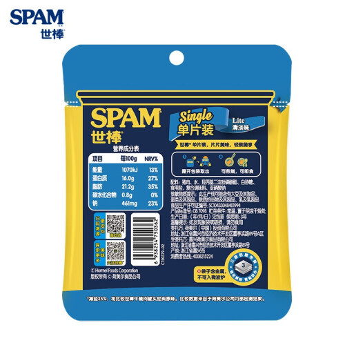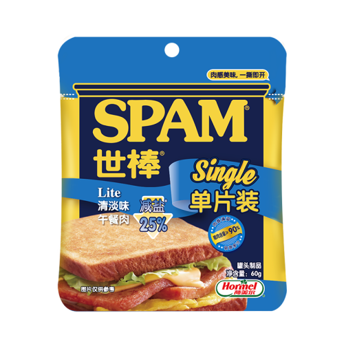 当前的位置: 首页 > 今日值得买 > 世棒(SPAM)午餐肉 火腿罐头 烧烤火锅食材方便菜早餐方便食材手抓饼搭档 减盐清淡60g