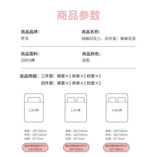 当前的位置: 首页 > 今日值得买 > 梦洁家纺【京喜购】100%纯棉床上四件套全棉床单被套单双人床ins网红款 莓果花茶 1.2米床(150*200cm)三件套