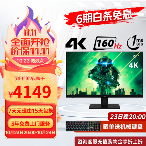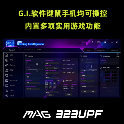 当前的位置: 首页 > 今日值得买 > 微星MSI 32英寸4K电竞显示器HDR600 1ms(GTG) 10Bit电竞大金刚游戏显示屏 【高配版】160Hz MAG323UPF