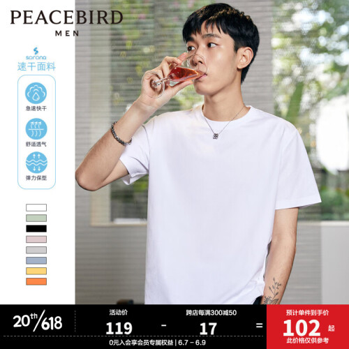 当前的位置: 首页 > 今日值得买 > 太平鸟男装 夏短袖T恤男索罗那面料速干运动服纯色体恤弹力打底衫 白色速干(合体) L