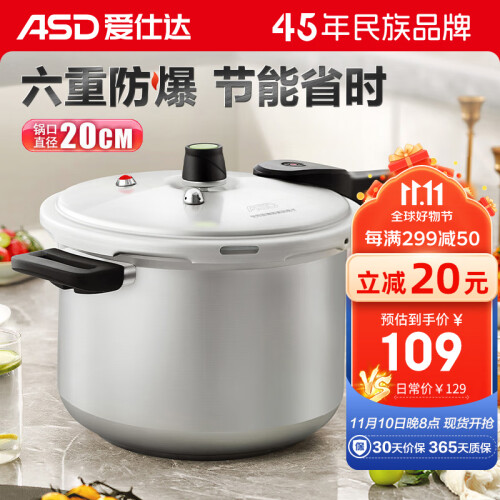当前的位置: 首页 > 今日值得买 > 爱仕达 ASD 高压锅燃气明火防爆六保险4.0L铝合金小号压力锅YL20S2WG