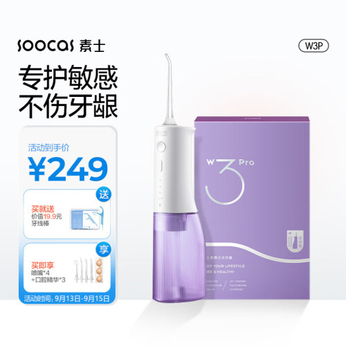 当前的位置: 首页 > 今日值得买 > 素士(SOOCAS)W3Pro冲牙器水牙线洗牙器洁牙器口腔清洁 全身水洗便携 配4个喷嘴 W3 pro紫 冲牙器(享喷嘴*4+漱口水*3)