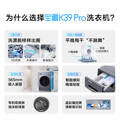 当前的位置: 首页 > 今日值得买 > 海尔(Haier)滚筒洗衣机全自动 宝藏K39Pro 10公斤大容量 六维减震 3D净护内筒 超薄 彩屏 以旧换新 EG10065S