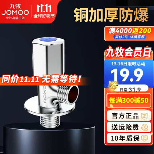 当前的位置: 首页 > 今日值得买 > 九牧(JOMOO)铜角阀三角阀加厚冷热水阀开关水家用止水阀分水器 单冷74055