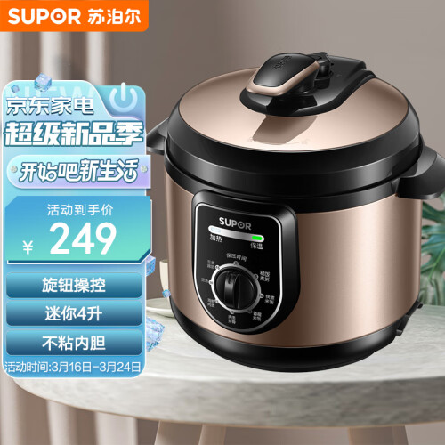 当前的位置: 首页 > 今日值得买 > 苏泊尔一人食迷你电压力锅4L 家用智能旋钮面板 煲汤煮粥保温易清洁不粘内胆SY-40YA9010C高压锅(1-3人)