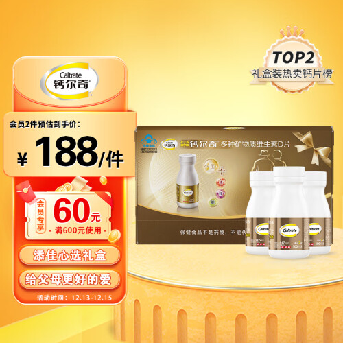 当前的位置: 首页 > 今日值得买 > 金钙尔奇添佳碳酸钙 3瓶礼盒装钙片300片 中老年45岁以上适用 成人补钙 含钙镁锌铜维生素D3 营养保健品