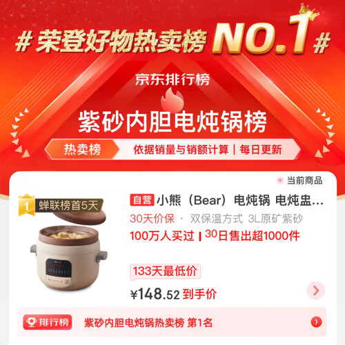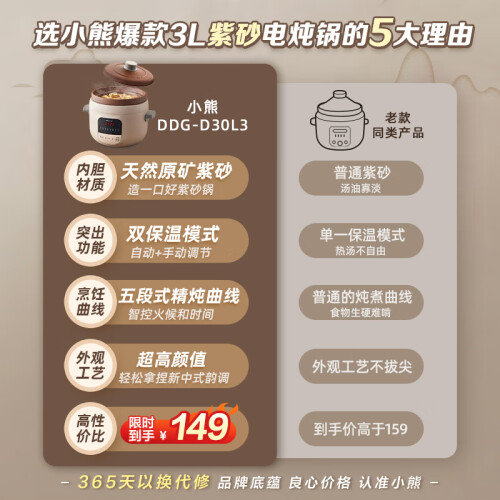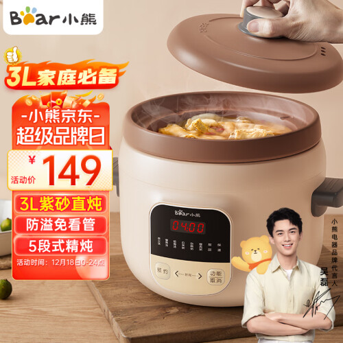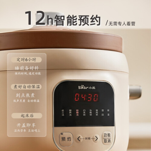 当前的位置: 首页 > 今日值得买 > 小熊(Bear)电炖锅 电炖盅 煲汤锅 炖汤锅 电砂锅 煮粥锅 可预约定时 紫砂 婴儿辅食燕窝熬粥 DDG-D30L3 3升