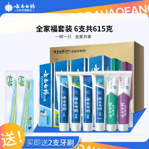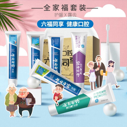 当前的位置: 首页 > 今日值得买 > 云南白药牙膏全家福套装6支装共615克薄荷留兰清新口气平衡口腔菌群 全家福1套装