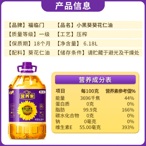 当前的位置: 首页 > 今日值得买 > 营养家 食用油 黄金小黑葵葵花仁油6.18L 物理压榨一级 中粮福临门出品
