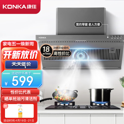 当前的位置: 首页 > 今日值得买 > 康佳(KONKA)抽油烟机顶侧双吸 经典侧吸式 家用18m³/min爆炒大吸力700mm小户型优选油烟机 CXW-288-KJ57S