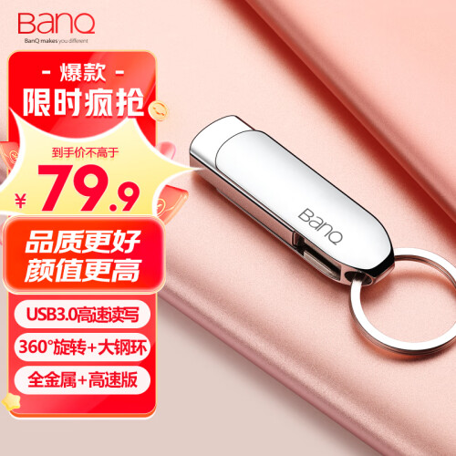 当前的位置: 首页 > 今日值得买 > banq 256GB USB3.2 Gen1 U盘 F30高速版 银色 全金属电脑车载两用优盘 360旋转大钢环 大容量商务个性闪存盘