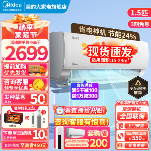 当前的位置: 首页 > 今日值得买 > 美的(Midea)空调 酷省电 一级能效全直流变频冷暖空调 双节能低噪 智能除菌大风量空调挂机 1.5匹:KFR-35GW/N8KS1-1