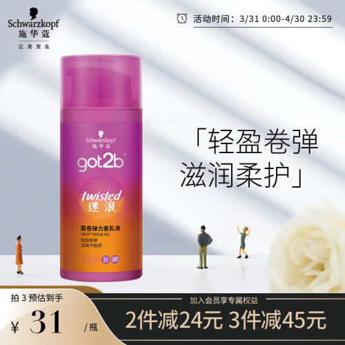 当前的位置: 首页 > 今日值得买 > 施华蔻(Schwarzkopf)got2b迷浪盈卷弹力素乳液100ml(卷发碎发定型 持久护卷 清爽)