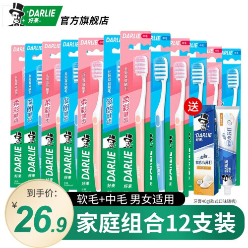 当前的位置: 首页 > 今日值得买 > 好来(DARLIE)牙刷软毛柔丝深洁俊朗健齿护齿中硬毛男士女士黑人牙刷成人 俊朗健齿12支【男女 软毛+中毛】
