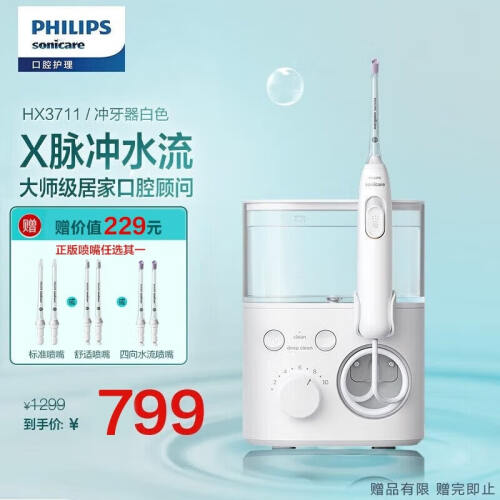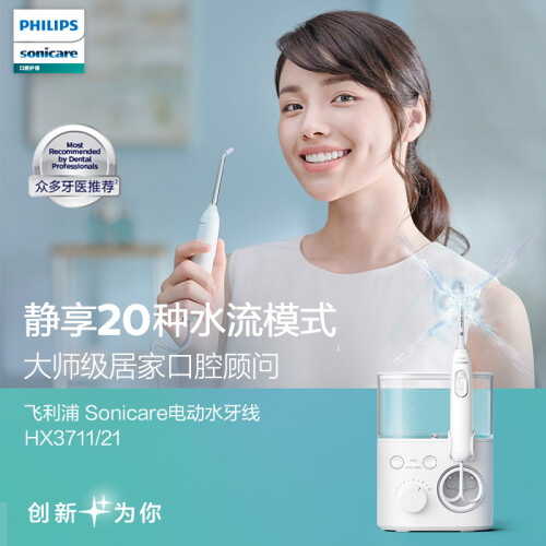 当前的位置: 首页 > 今日值得买 > 飞利浦家用台式冲牙器洗牙器水牙线 台式家用 四向水流科技2种洁齿模式10级洁齿力度水魔方白色HX3711/21