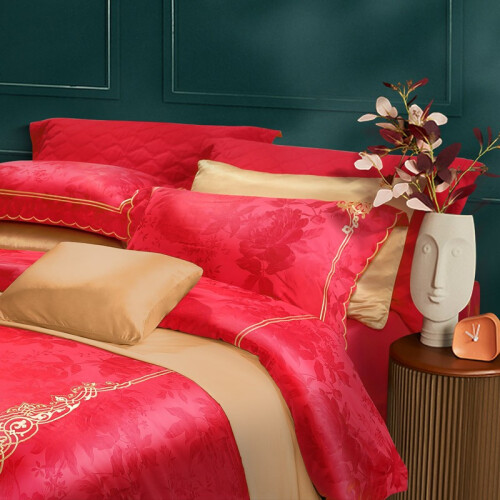 当前的位置: 首页 > 今日值得买 > 富安娜家纺 大红婚庆四件套床上用品结婚提花刺绣床品套件 四件套(提花+B版全棉)礼盒 锦悦 1.8米床(被套230*229cm)