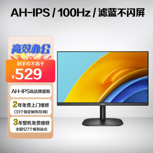 当前的位置: 首页 > 今日值得买 > AOC 23.8英寸 AH-IPS广色域 100Hz HDRMode 低蓝光不闪 三边微边超薄机身 节能办公电脑显示器 24B2H2
