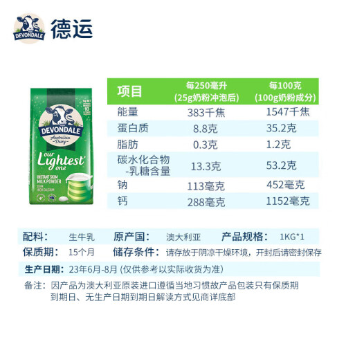 当前的位置: 首页 > 今日值得买 > 德运(Devondale)澳洲进口高钙脱脂成人奶粉1kg 调制乳粉 儿童青少年中老年奶粉