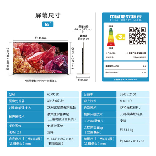当前的位置: 首页 > 今日值得买 > 索尼(SONY)【官方直营】XR-65X95EK 65英寸 MiniLED 4K120Hz 旗舰影院电视 智能摄像头 XR认知芯片 京配上门