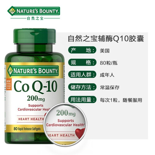 当前的位置: 首页 > 今日值得买 > 自然之宝辅酶Q10胶囊200mg*80粒加强型高含量coq10备孕成人心脏保健品 美国原装进口