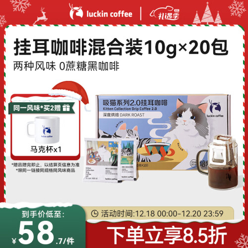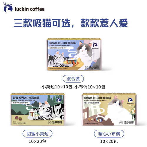 当前的位置: 首页 > 今日值得买 > 瑞幸咖啡吸猫挂耳系列挂耳咖啡 混合装10g*20袋 现磨手冲滤泡挂耳黑咖啡粉