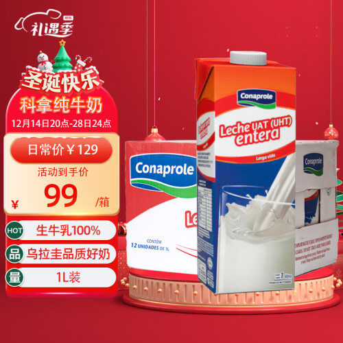 当前的位置: 首页 > 今日值得买 > 科拿(Conaprole)乌拉圭原装进口全脂高钙纯牛奶 3.4g优质乳蛋白 1L*12整箱 早餐奶