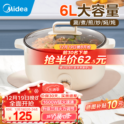 当前的位置: 首页 > 今日值得买 > 美的(Midea)电火锅 电炒锅多功能锅火锅专用锅家用大容量电煮炖锅电锅一体锅电煮锅 6L丨加深内胆火锅丨HGE3010