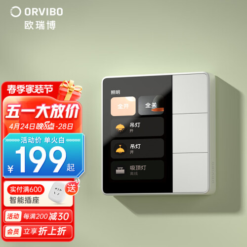 当前的位置: 首页 > 今日值得买 > 欧瑞博(ORVIBO) 智能开关家庭面板触屏语音声控全屋智能精灵遥控触摸屏定时网关 精灵智能开关(网关版)单火-白