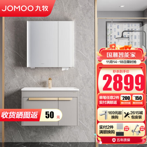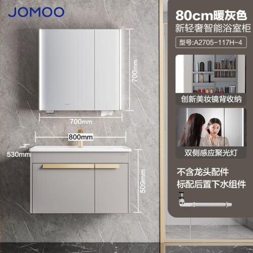 当前的位置: 首页 > 今日值得买 > 九牧(JOMOO)浴室柜陶瓷一体盆卫生间洗脸盆柜洗手盆组合卫浴洗漱台组合A2705 80智能灰【单门拉篮-无龙头】