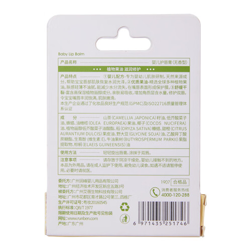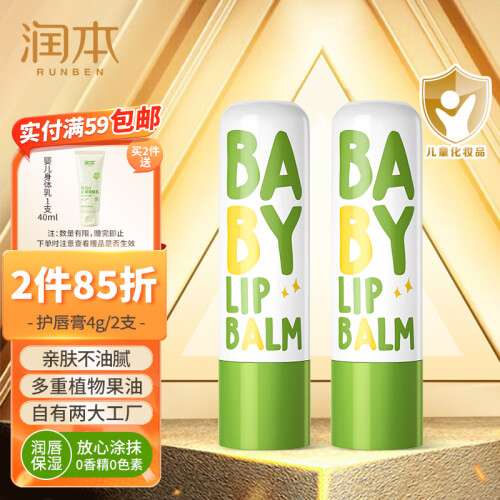 当前的位置: 首页 > 今日值得买 > 润本(RUNBEN)儿童唇膏婴儿护唇膏4g×2支宝宝润唇膏保湿防干裂补水防皴 无香型