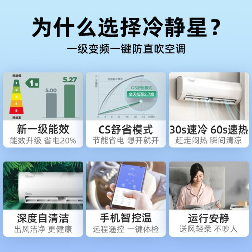 当前的位置: 首页 > 今日值得买 > 美的(Midea)空调挂机 风酷 冷静星新一级能效卧室防直吹老人儿童省电节能大风口易拆卸清洗 变频冷暖家用空调 1.5匹 一级能效 【智能省电】冷静星二代