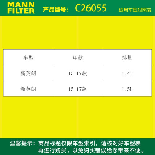 当前的位置: 首页 > 今日值得买 > 曼牌(MANNFILTER)空气滤清器空气滤芯空滤C26055适用于别克新英朗15-17款 1.4T1.5L