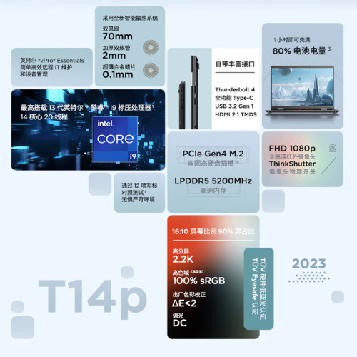 当前的位置: 首页 > 今日值得买 > ThinkPad 联想 T14p 2023款14英寸高性能标压轻薄笔记本 13代酷睿i9-13900H 32G 1TB SSD 2.2K 商务办公学生本