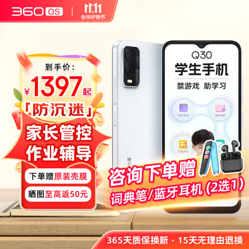 当前的位置: 首页 > 今日值得买 > 360 OS学生手机 初中儿童小学高中青少年 学习网课专用 防沉迷助学习 家长可控 Q30 6G+128G 冰晶白 学习版