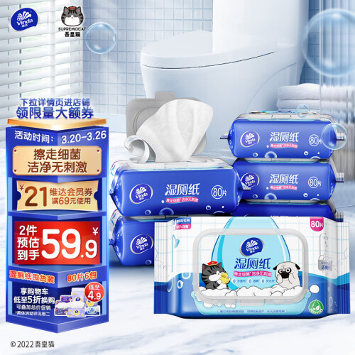 当前的位置: 首页 > 今日值得买 > 维达(Vinda)湿厕纸【赵丽颖推荐】家庭装80片*6包吾皇湿纸巾 大分量厕纸湿巾