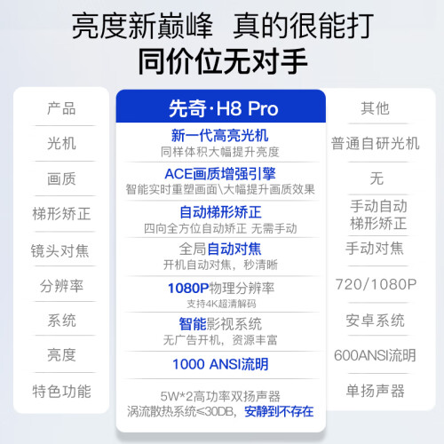 当前的位置: 首页 > 今日值得买 > 先奇(XIANQI)H8Pro 投影仪 家用投影机 智能家庭影院 (高亮升级 自动对焦 自动梯形矫正 1080P分辨率)