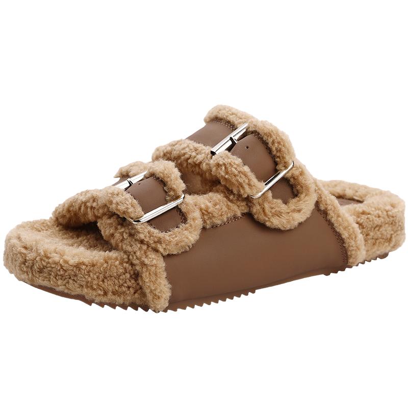 更多百丽时尚加绒保暖毛毛拖鞋休闲女鞋外穿鞋子气质拖鞋女款B1070DT2