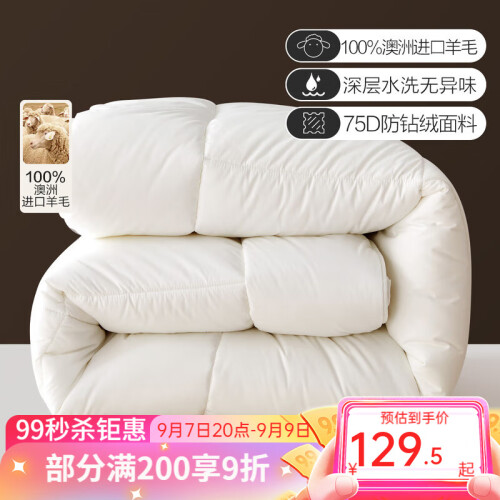 当前的位置: 首页 > 今日值得买 > 百丽丝 澳洲进口羊毛被100纯羊毛被子被芯加厚保暖冬被抗菌春秋被 【100%澳毛】抗菌羊毛春秋被 单人被1.2/1.5米(被芯150*210cm)