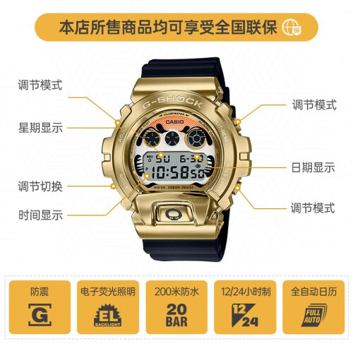 当前的位置: 首页 > 今日值得买 > 卡西欧【圣诞礼物】G-SHOCK达摩联名款防水防震时尚男士手表 GM-6900GDA-9PR