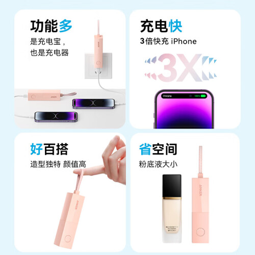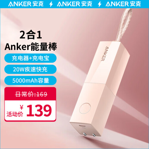 当前的位置: 首页 > 今日值得买 > Anker安克充电宝充电器二合一能量棒20W快充带插头移动电源可折叠可上飞机适用苹果15/13/安卓 【能量棒】20W超级充不带线粉色