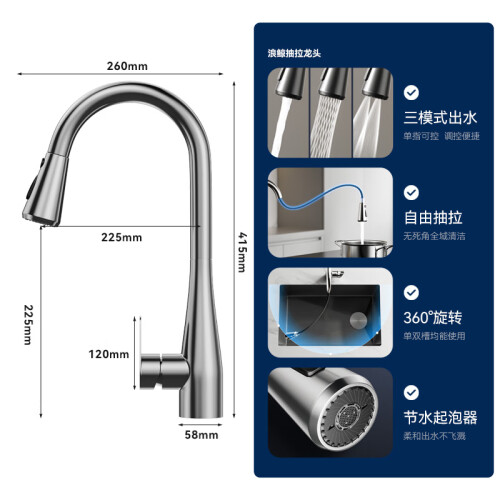 当前的位置: 首页 > 今日值得买 > 浪鲸(SSWW)厨房用304不锈钢厨房龙头冷热抽拉式龙头洗碗盆洗菜盆 TV1 【抽拉款】304不锈钢-拉丝